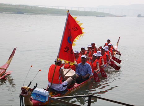 6月22日,中國·鄖縣第四屆調(diào)水源頭龍舟節(jié)在鄖陽漢江大橋南岸橋頭隆重開幕。我公司組建的龍舟隊(duì)在隊(duì)員們半個(gè)月的艱苦訓(xùn)練下,順利通過初賽并進(jìn)入決賽。決賽當(dāng)天我公司龍舟隊(duì)在江上擂鼓運(yùn)漿,奮力飛馳,激起白浪翻騰,聚集于江岸的萬千觀眾激起一陣又一陣的助威加油聲浪,經(jīng)過數(shù)輪激烈角逐我公司龍舟隊(duì)在18支參賽龍舟隊(duì)中脫穎而出,最終獲“道德風(fēng)尚”榮譽(yù)稱號。